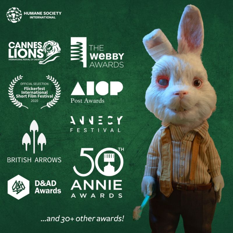 Meet Ralph, the spokes-bunny for Humane Society International's global campaign to ban cosmetic animal testing. This powerful stop-motion film features Oscar winner Taika Waititi as Ralph, alongside Ricky Gervais, Zac Efron, Olivia Munn, Pom Klementieff, and Tricia Helfer. Though Ralph is animated, his experiences reflect the real suffering of countless animals in laboratories worldwide. Since its release, #SaveRalph has helped Mexico, Brazil, Canada, and Chile ban cosmetic animal testing and is advancing similar legislation globally.